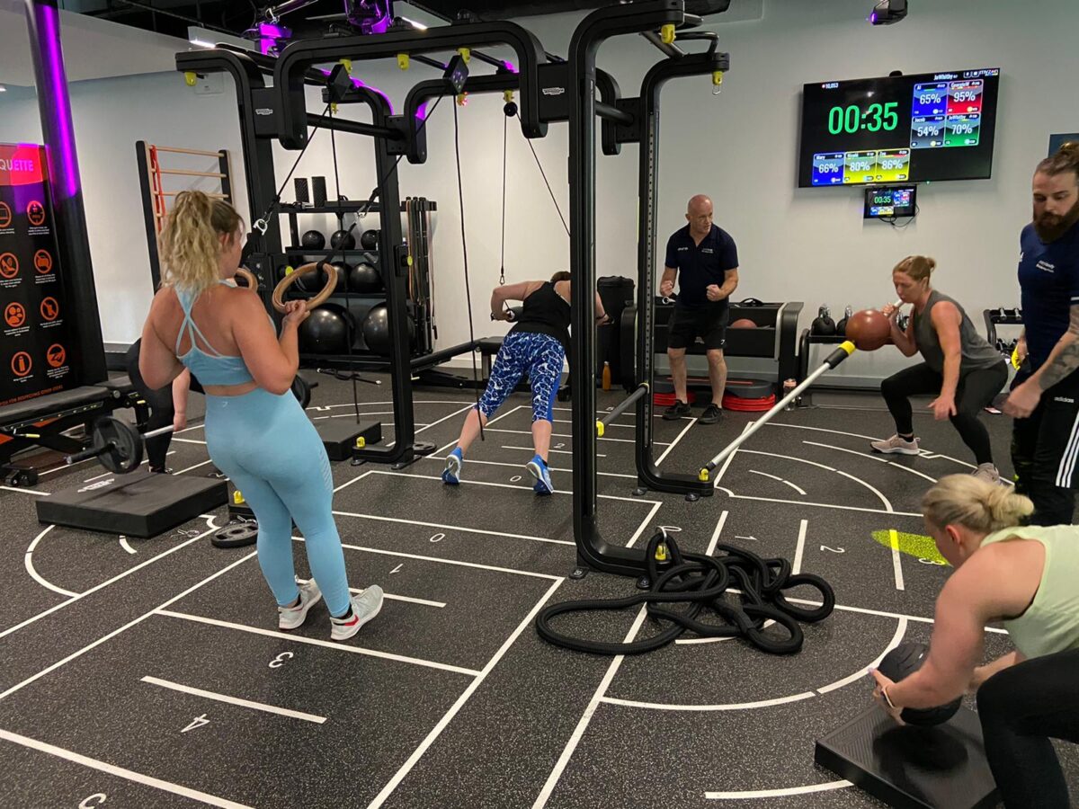 This circuit based HIIT workout uses functional training equipment and heart rate monitoring through MyZone. Reap the benefit of using multi-functional machines, boxing stations, power bags, plyo boxes, kettlebells, slam balls, and battle ropes.